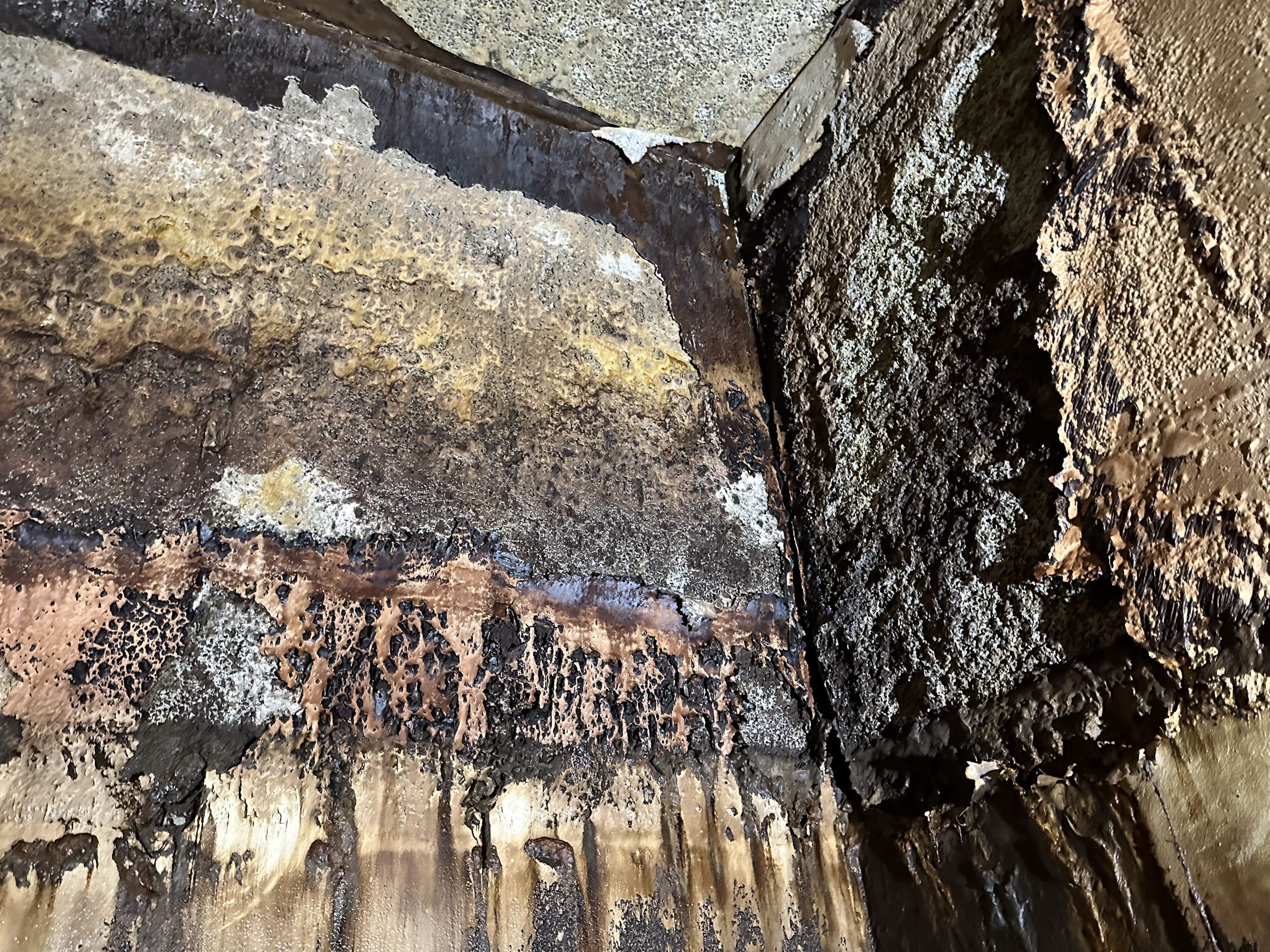 The primary threat is microbiologically induced corrosion (MIC). This process begins when bacteria in the sewage produce hydrogen sulfide gas (H2S). This gas accumulates in the air above the waterline. Other bacteria on the concrete surface then convert this gas into sulfuric acid (H2SO4). The acid attacks the cement in the concrete. This attack weakens the structure and exposes the steel reinforcement within, leading to rapid deterioration.